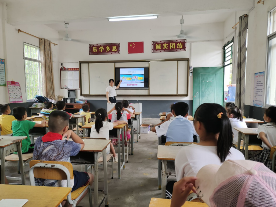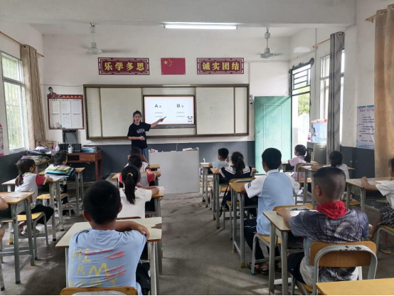“蒲公英”支教服务团队的队员们针对乡镇地区儿童英语薄弱这一问题,从基础知识教起,让孩子们赢在起跑线上。第一第二节课教小朋友认识26个字母的大小写,通过认、读、唱、写四个步骤来带领小朋友们学习26个字母。英语字母是英语学习的基础,是入门教学中的重要一环,通过上台展示,举手回答问题,批改作业等形式进行教学,激发学生学习的积极和兴趣。同时为了让小朋友们了解更多的安全教育知识,“青春向党”志愿团的成员为小朋友们普及用电用火以及交通安全的知识,让小朋友们提高警惕,防患于未然。